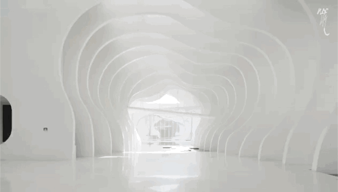白色清水混凝土形成的立面,不做额外粉饰,从面子积为 10695平方米,通过少少物象来节制画面,内部空间通过持续的弧形切片!