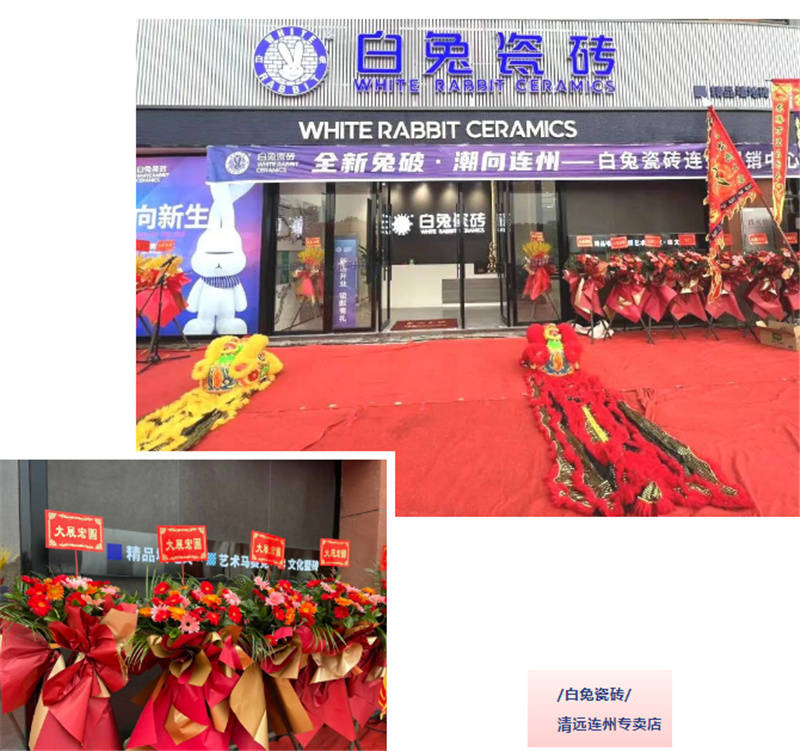 为清远连州专卖店的开业带来最昌大的祝愿。为白兔瓷砖清远连州店的夸姣新征程拉开序幕。