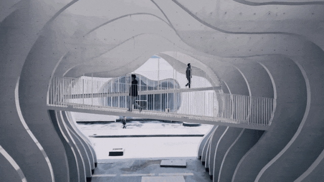 白色清水混凝土形成的立面,不做额外粉饰,从面子积为 10695平方米,通过少少物象来节制画面,内部空间通过持续的弧形切片!